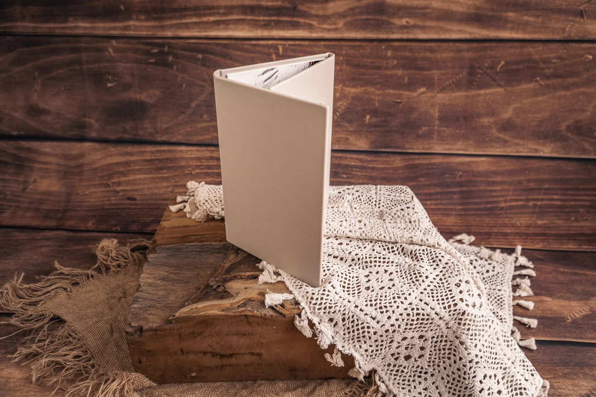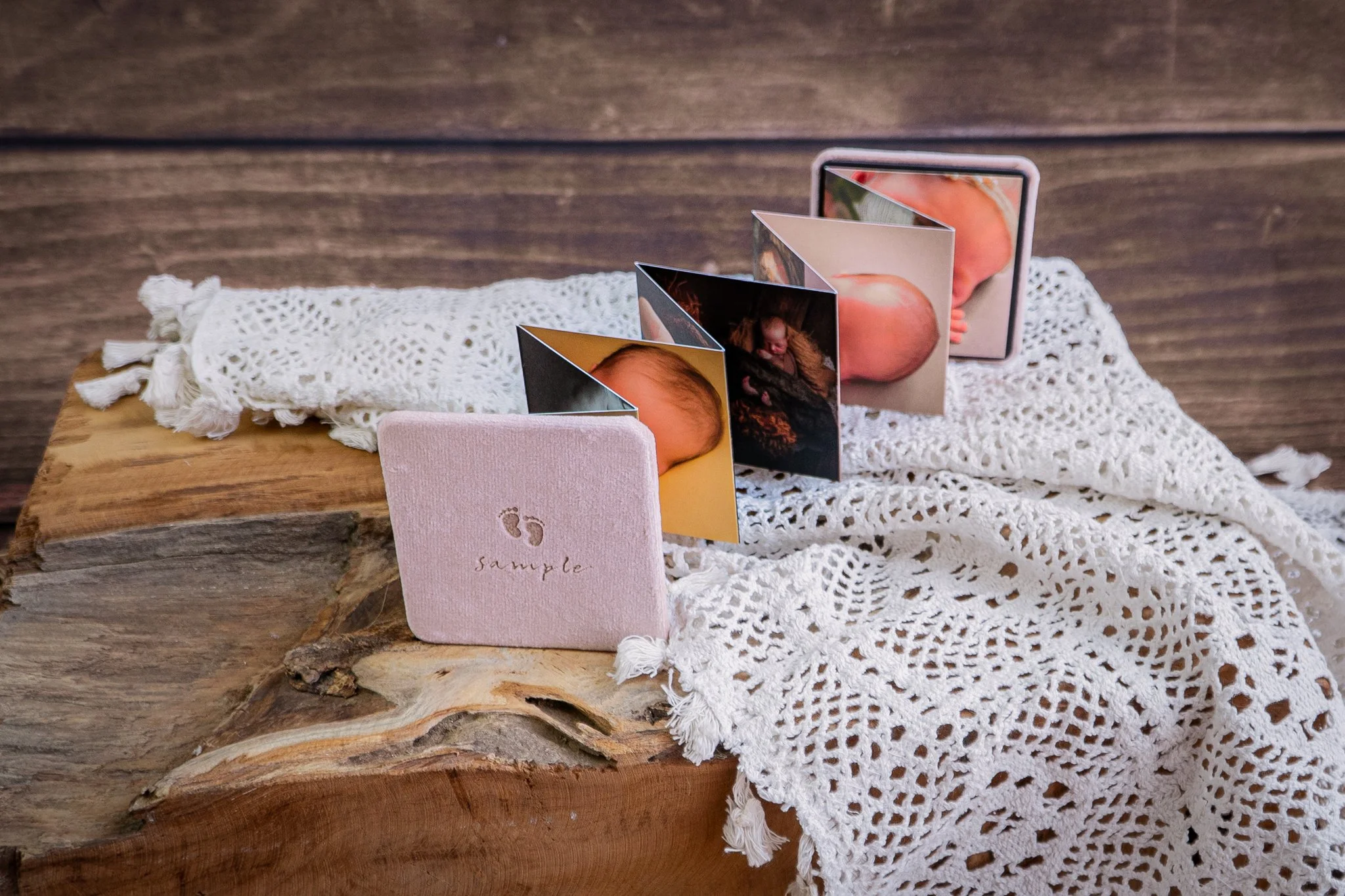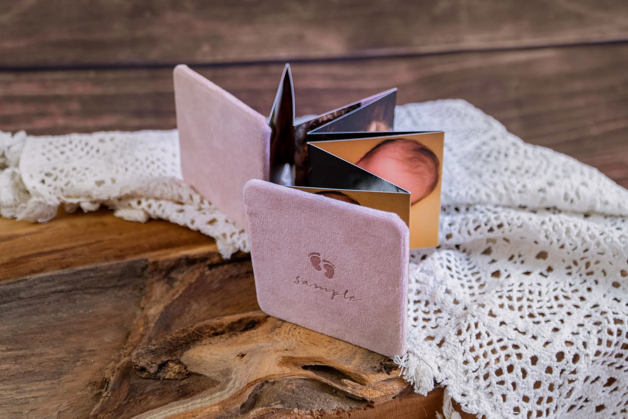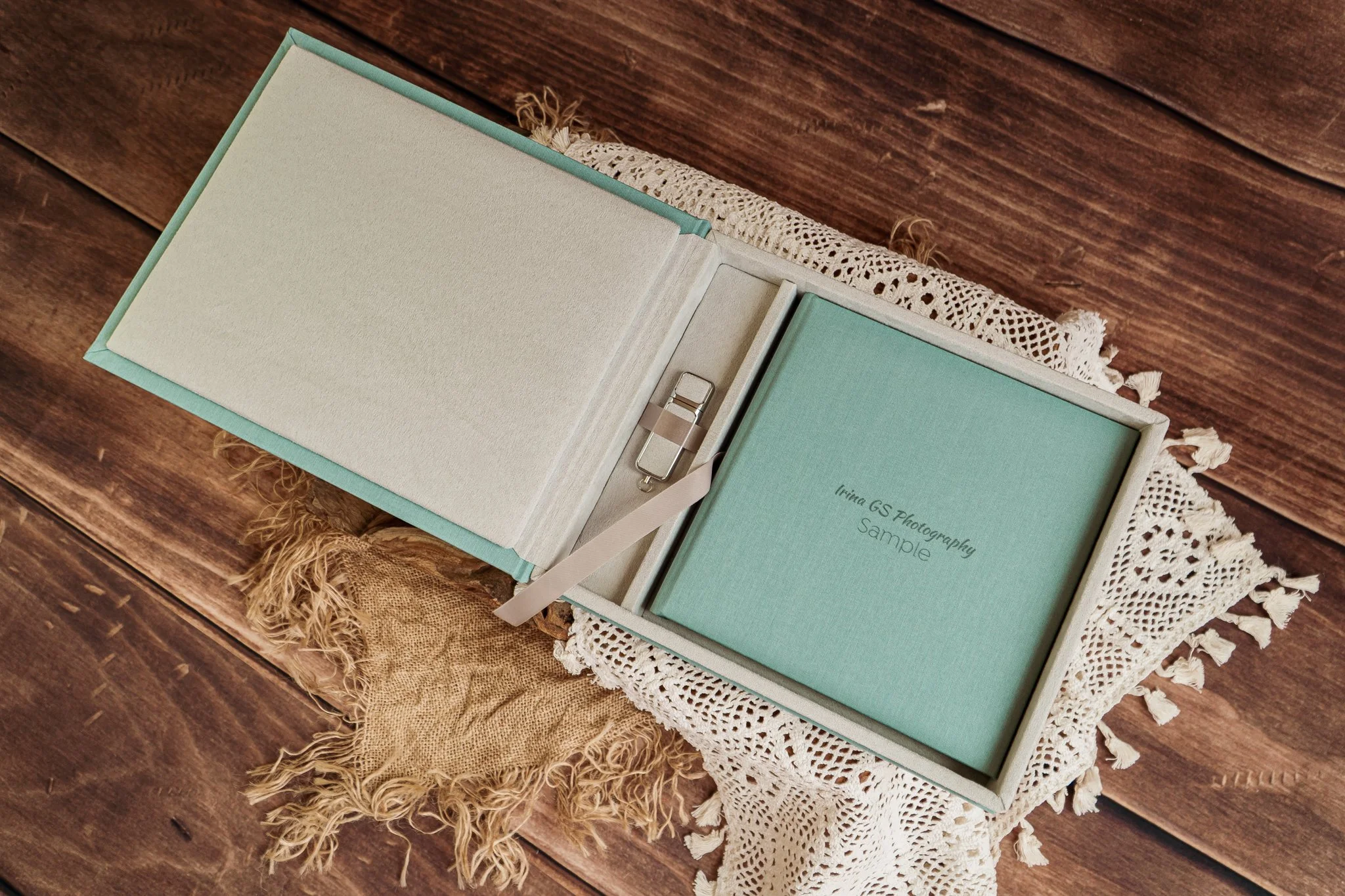 With 9 velvet material options, magnetic close over with an option to laser etch. Design from 12-18 pages, 6-18 photos, at 7x7 cm/ 2.7x2.7’’ panels.